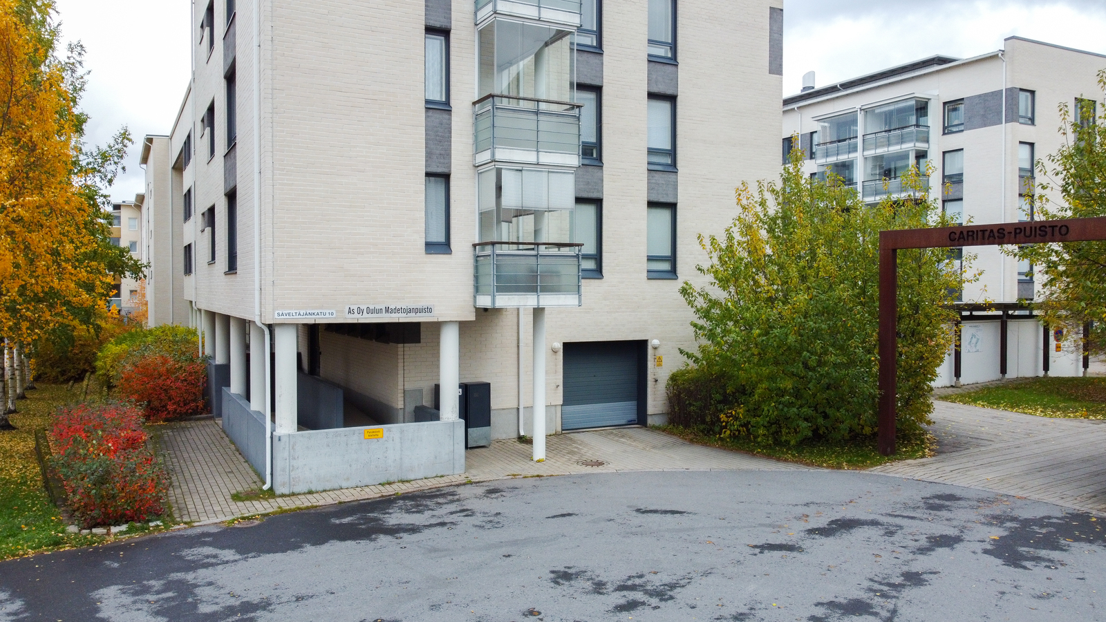 Yhtiö on omalla tontilla ja kaukolämmössä. Caritas -kylän talot muodostavat esteettömän ja turvallisen korttelin, jossa on mm. yhteisiä oleskelutiloja, lapsenlapsille leikkipaikka ja läheltä löytyy myös Caritaksen ravintola- ja hyvinvointipalvelut. Keskustaankin on lyhyt kävelymatka vierestä menevän alikulkutunnelin kautta. Alueella asuminen tarjoaakin helppoutta, turvallisuutta ja sujuvaa arkea!