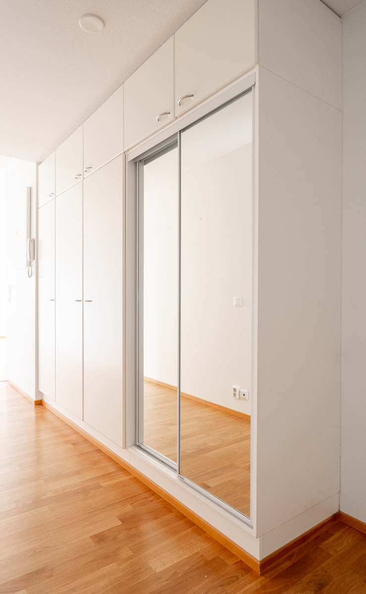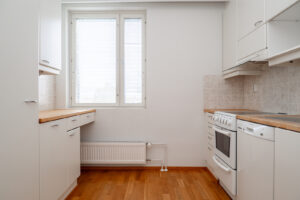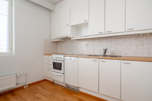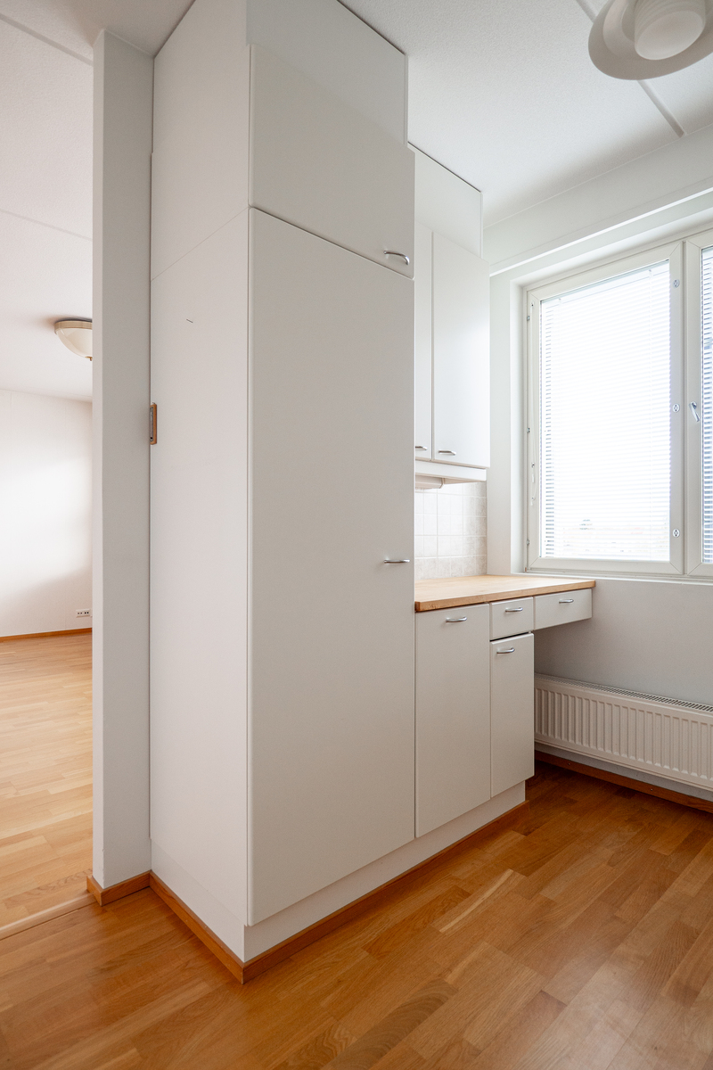 Vuonna 2003 valmistunut 68,5m2:n asunto sijaitsee siis hissillisen kerrostalon ylimmässä 5. kerroksessa. Tässä valoisassa kodissa on tilava eteiskäytävä, josta avautuu hulppean kokoinen olohuone. Olohuoneen yhteydessä on erillinen keittiö, jossa on runsaasti kaappi- ja tasotilaa sekä kattava kodinkoneistus aina täyskorkeista kylmälaitteista lähtien. Olo- ja makuuhuoneen tilanjakajana on liukuovi, joka säästää tilaa ja helpottaa tilojen kalustamista. Makuuhuoneessa on reilusti asuinneliöitä ja runsaasti kaapistotilaa sekä sieltä on käynti lasitetulle parvekkeelle. Parvekkeelta avautuu näkymät Etu-Lyötyn ja Karjasillan suuntiin. Tilavassa kylpyhuoneessa on kaikki tarvittava varustus – mm. lattialämmitys, paikka pesutornille ja toimivat säilytysratkaisut.