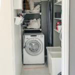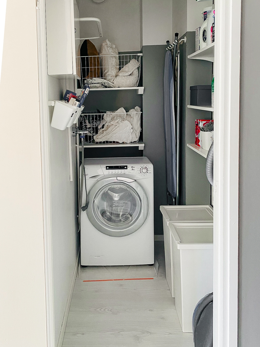 Tilojen kuvausEteiskäytävän/keittiön vieressä toinen vaatehuone/"kodinhoitokomero", jossa pyykinpesukoneliitäntä.