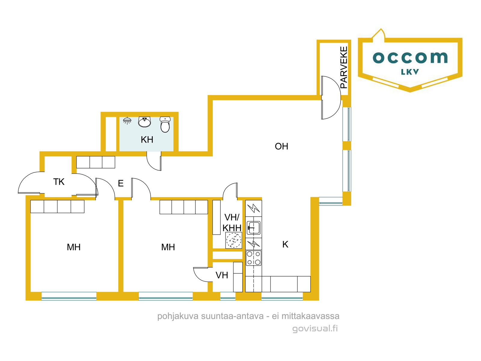 Lisätietoja pinta-alastaYhtiöjärjestyksen mukaan huoneisto käsittää: 3h+k+kh.Ei tarkistusmitattu. Pinta-alat saattavat tämän ikäisissä kohteissa (yhtiö rekisteröity ennen 01.01.1992) poiketa olennaisestikin asuinrakennusten nykyisten mittaustapojen ja standardien (SFS 5139) mukaan laskettavasta asuintilojen pinta-alasta. Pinta-ala voi siis olla edellä mainittua pienempi tai suurempi.