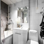 • Varusteet: kylpyamme, pesukoneliitäntä, lattialämmitys, wc-istuin, peili, kiinteät valaisimet, kylpyhuonekaapisto