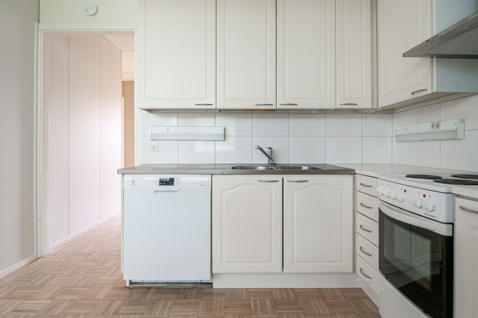 Asunnossa on kaksi tilavaa makuuhuonetta, joista kummassakin on reilusti kaapistotilaa. Toiseen makuuhuoneeseen on juuri asennettu kokolattiamatto, joka on erittäin miellyttävä jalan alla. Vaaleassa, erillisessä keittiössä on runsaasti kaappi- ja tasotilaa sekä ikkunan edustalla on hyvin tilaa ruokailuryhmällekin. Huoneistoille kuuluu kaksi erillistä varastoa, joten varastotilaa on runsaasti.