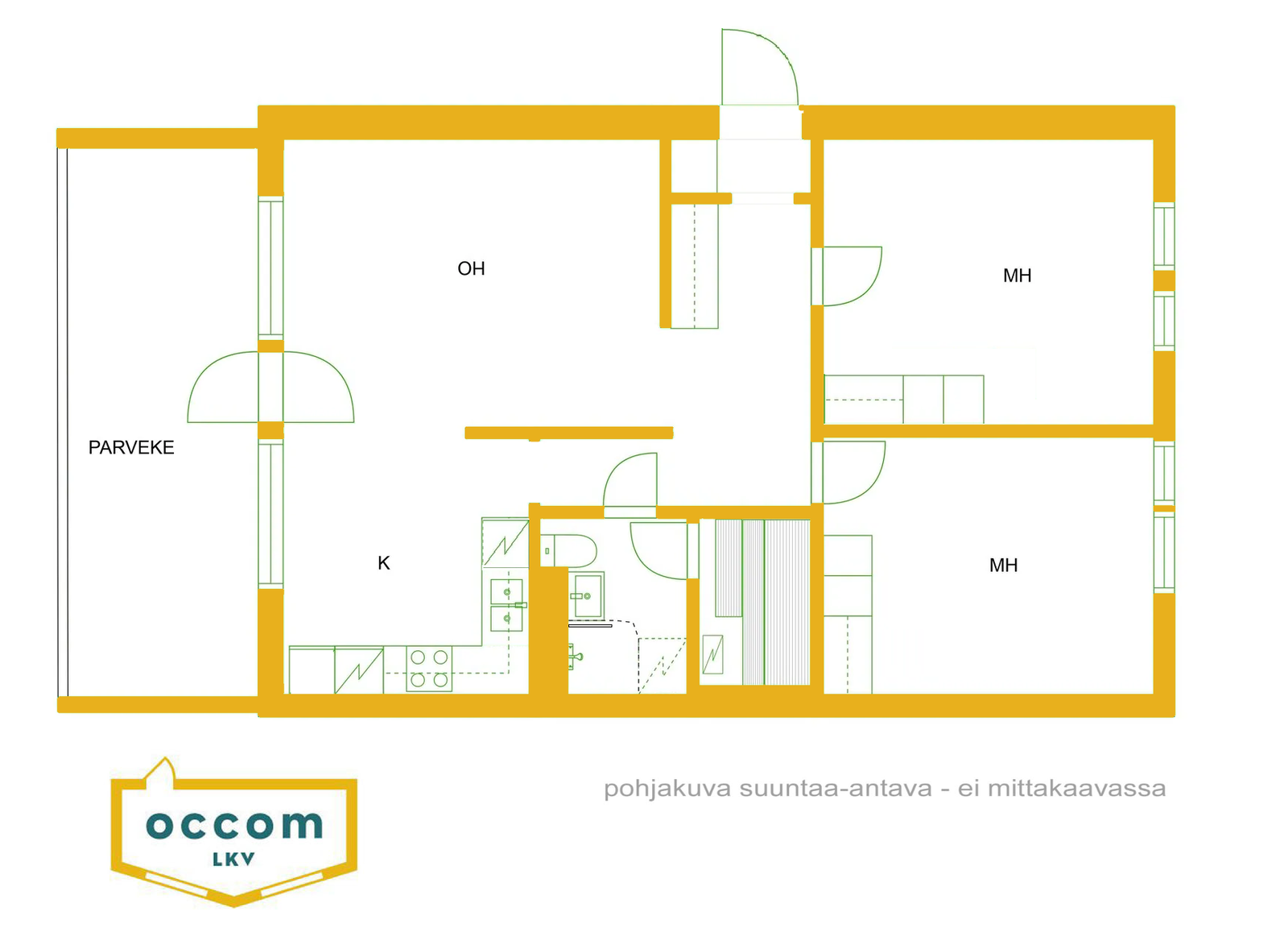 Lisätietoja pinta-alasta | Ei tarkistusmitattu. Yhtiöjärjestyksen mukaan huoneisto käsittää 3h+k+s. |